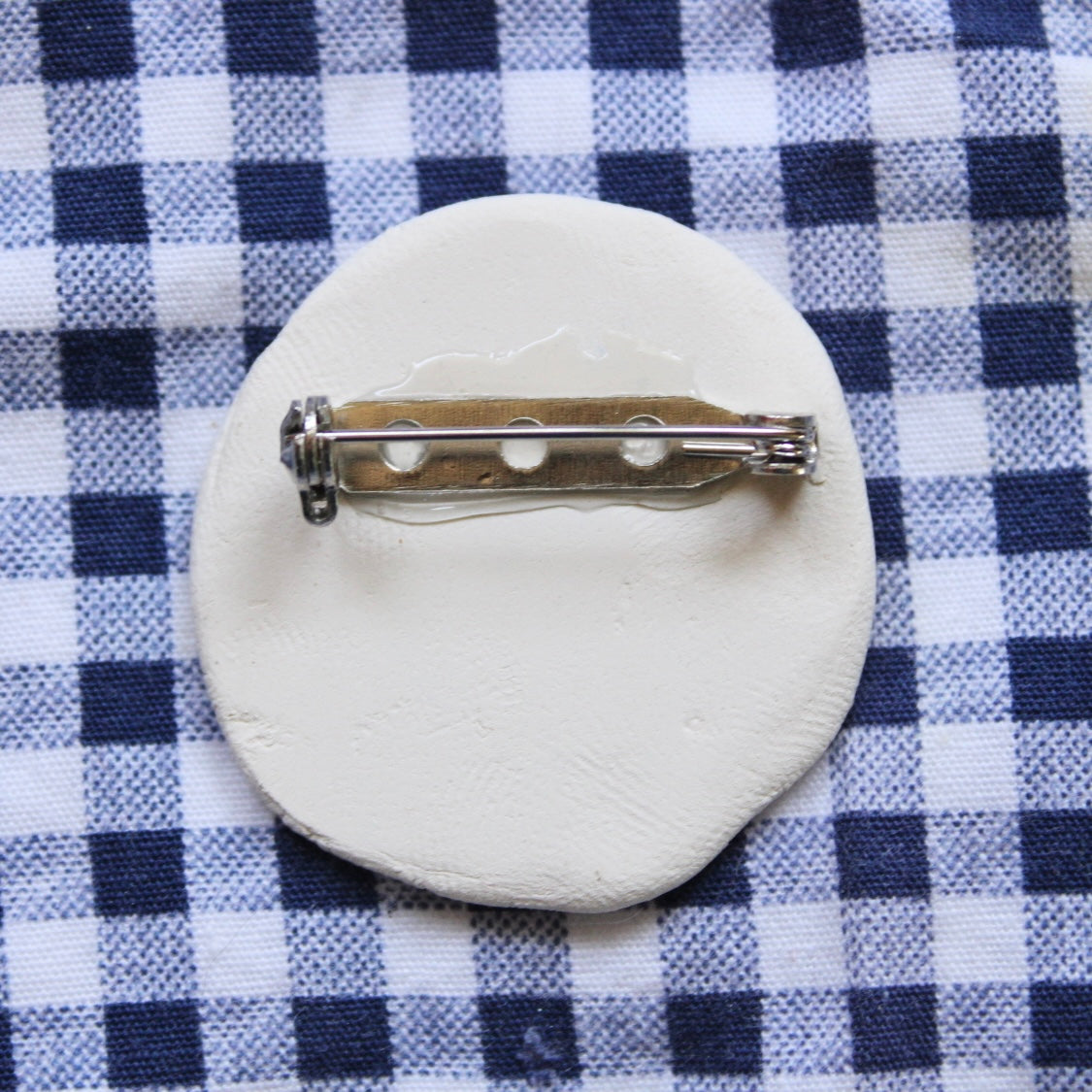 Hand formed & hand painted earthenware ceramic brooch/pin.