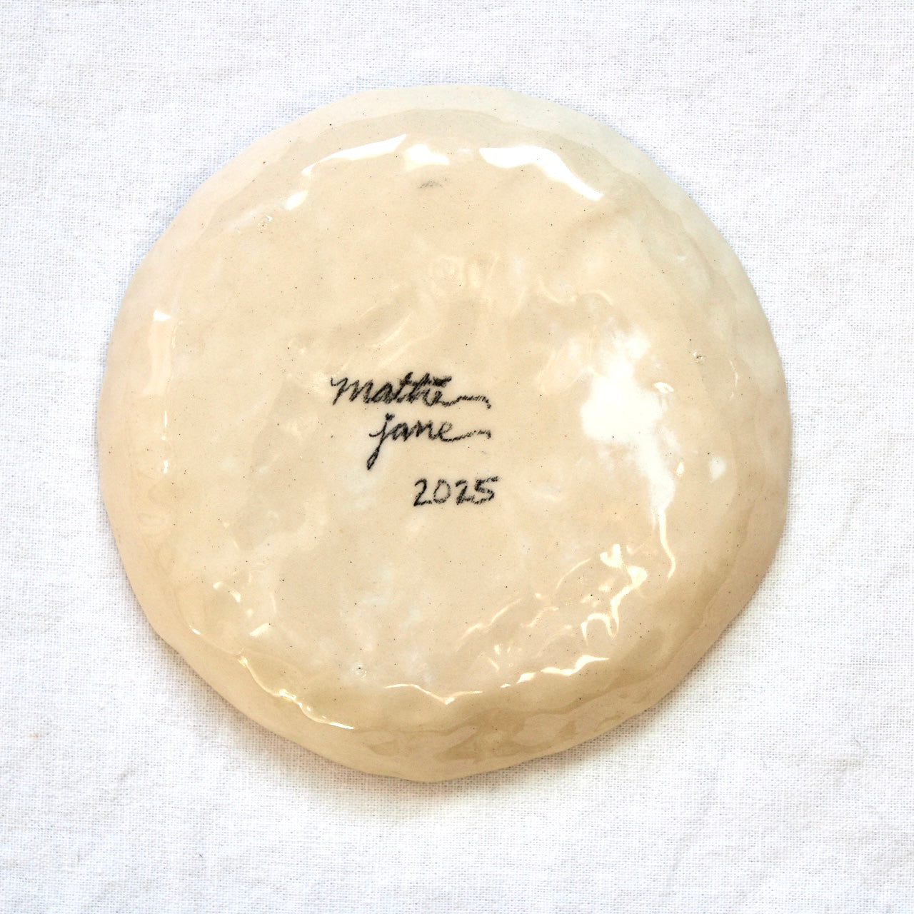 This piece is being sold as a second due to slight discoloration on the bottom.