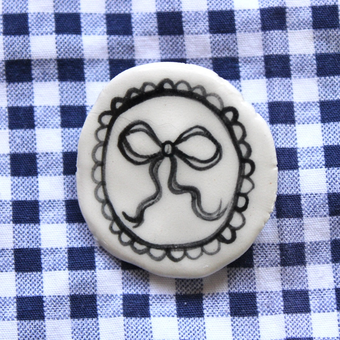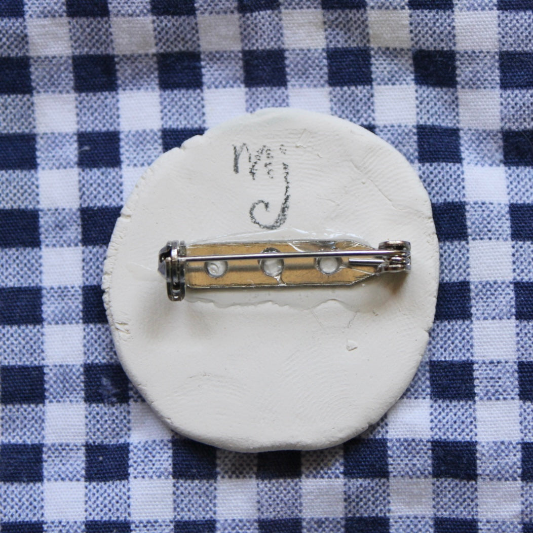 Hand formed & hand painted earthenware ceramic brooch/pin in black.
