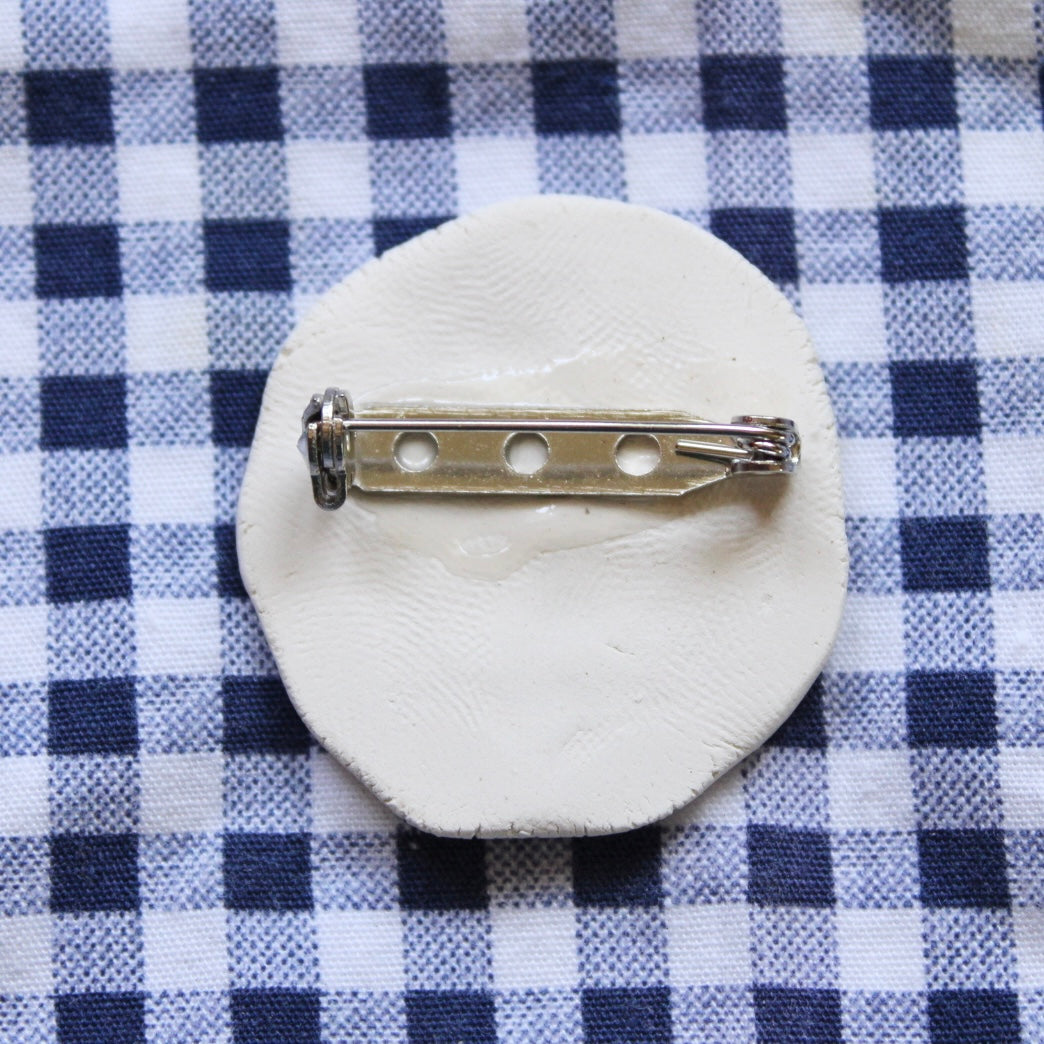 Hand formed & hand painted earthenware ceramic brooch/pin.