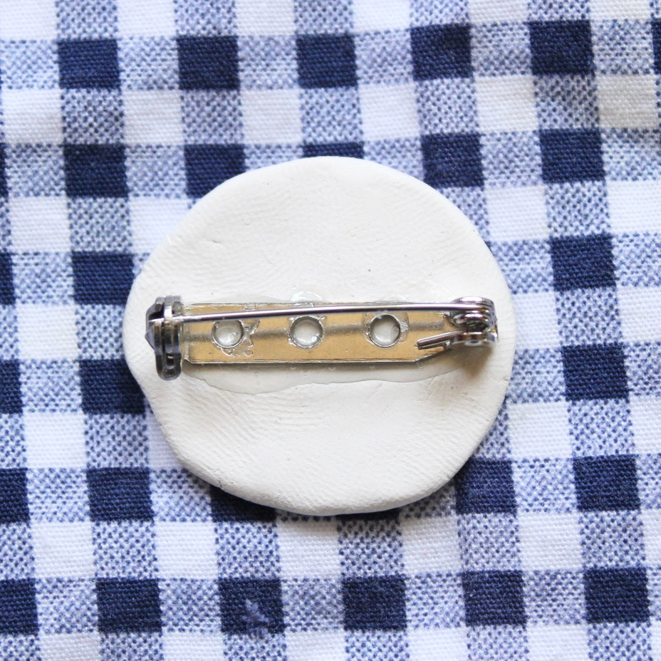 Hand formed & hand painted earthenware ceramic brooch/pin.