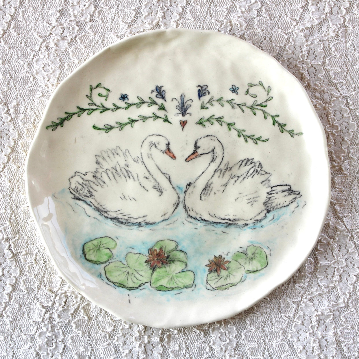 Swans With Lily Pads Dish
