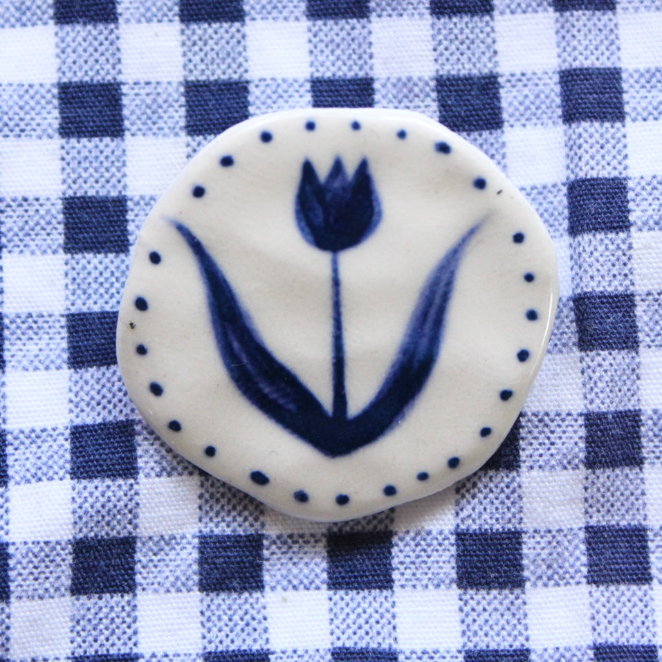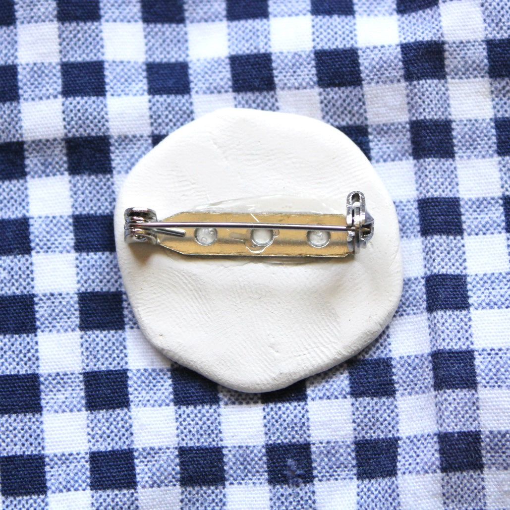 Hand formed & hand painted earthenware ceramic brooch/pin.